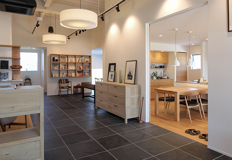 実物のサイズ感や使い勝手などは、JYUKOBOのコンセプトルームにてお試しいただけます。背面の収納キャビンネットと組み合わせた実例として、ぜひご覧ください。