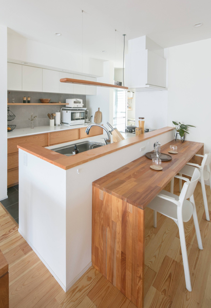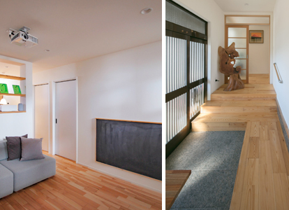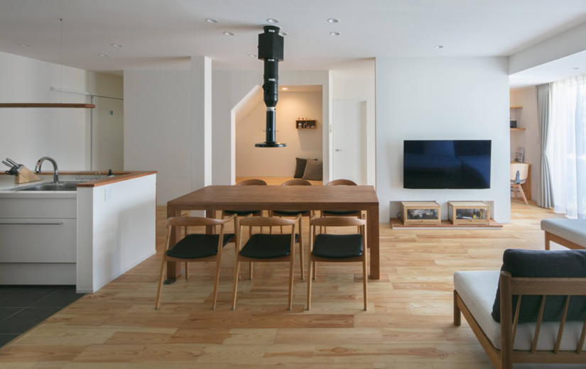 S様のご実家は、ご祖父様が30年前に新築された本格和風建築。近隣にお住まいのご兄弟ファミリーとともに毎週のように集まり、ご祖母様を囲んで食事会を催してきた、親族にとっても大切な場所です。そのご実家への同居を決意されたS様へJYUKOBOがご提案したのは、小さなお子様のいるS様ご家族(子世帯)とご両親・祖母様(親世帯)が程よい距離感で暮らせる上下階分離型二世帯住宅です。今後も「帰省したくなる家」であり続けるように、親世帯の1階の中心は、ひとつながりの大空間LDKに。リノベーション前の家を飾っていたケヤキの欄間を再利用して配置し、天然木の美しさが引き立つ “ジャパンディ(※)”スタイルに仕上げました。上階は、お子様が毎日を楽しく過ごせるよう、壁一面の収納棚、黒板塗装の壁など、随所に工夫と遊び心がちりばめられています。親世帯と子世帯が必要なときに行き来できる階段でゆるやかにつながり、それぞれの暮らしを楽しむことができる住まいが完成しました。